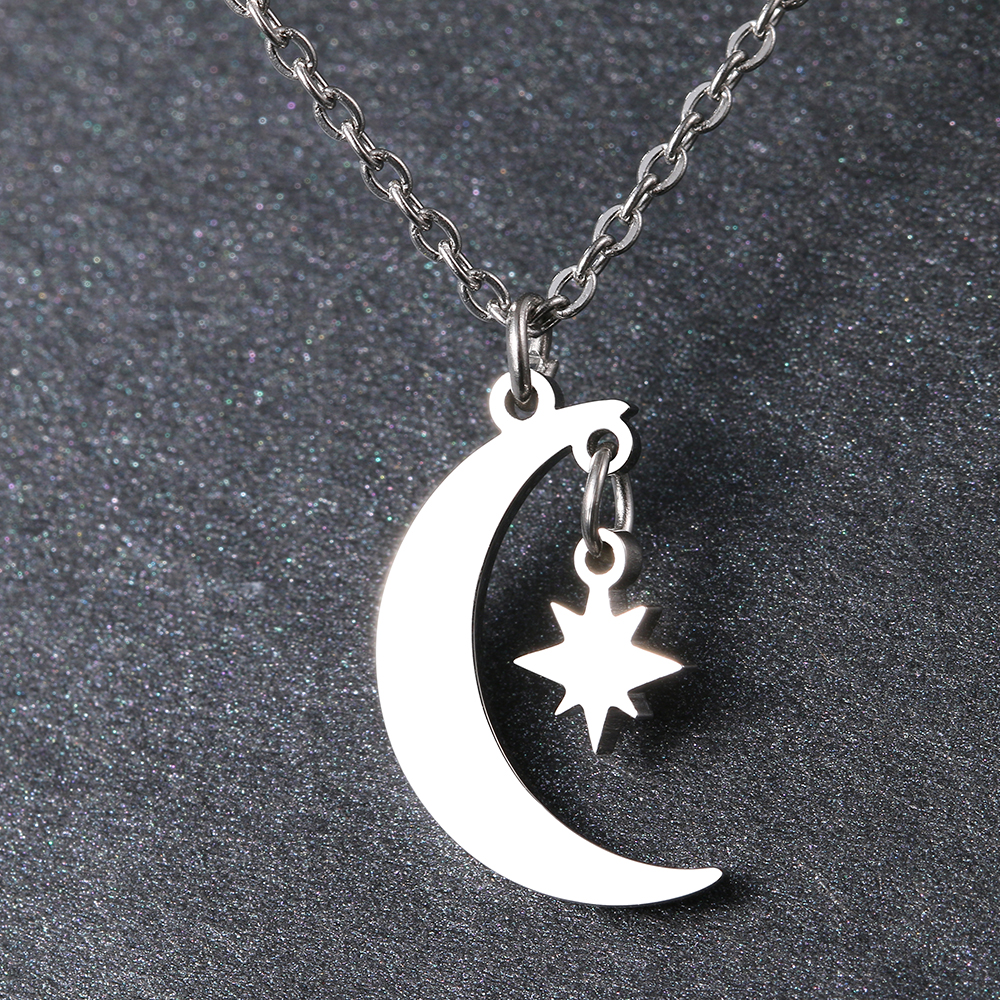 Stainless Steel Necklaces Moon Polaris Pendant Charm Chain Fine Choker Aesthetic Necklace For Women Jewelry Party Gifts Silver-45cm – Sumsfashion