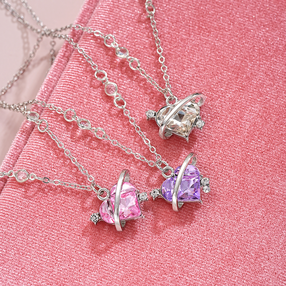 While searching for wedding bands, I also wanted to find a special gift for my bridesmaids. I found a unique set that I think they'll love. The 3 Pcs Crystal Heart Planet Pendant Necklace Set from Sumsfashion is really cute.